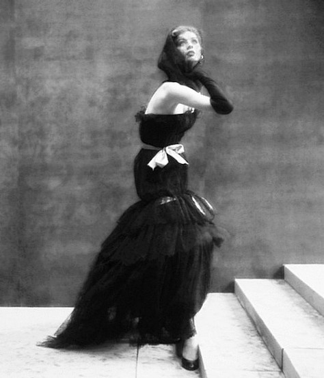 pode até parecer uma roupa absurda, mas na real essa estética da barra cogumelo já tinha estado até na capa da harpers bazaar lá em 1952, em foto maravilhosa de richard avedon para a então novíssima, moderníssima e chiquérrima coleção de cristóbal balenciaga.