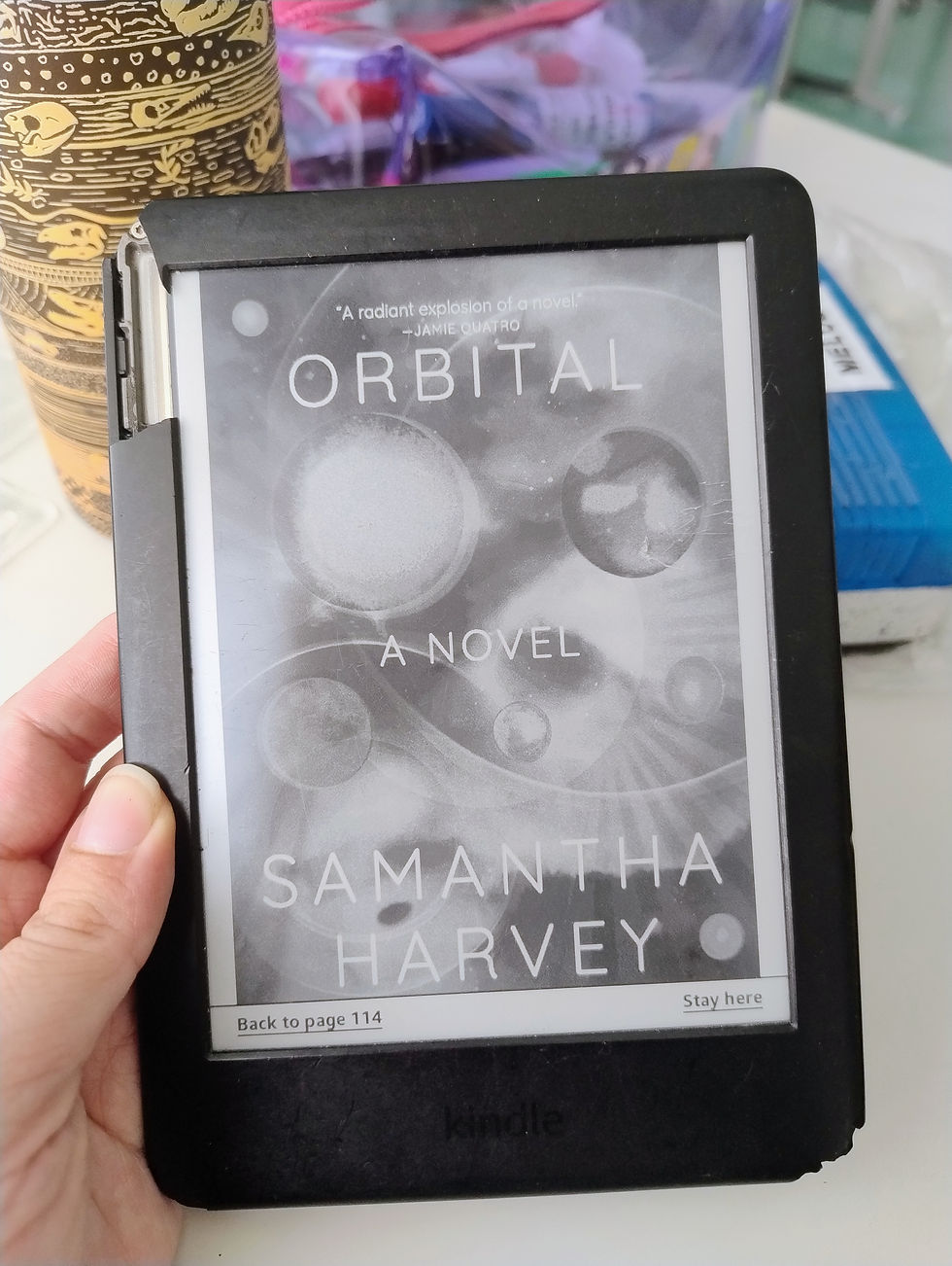 [talvez essa minha atual interpretação esteja altamente influenciada pela minha leitura do momento, o majestoso orbital, de samantha harvey. que livro infinito e poético! e também cru, quanta dureza e quanta ternura dentro do mesmo livro - e também quanta sabedoria frente a um universo inteiro, literalmente, de perguntas. a sensação de estar tão distante do planeta terra, ao mesmo tempo que sempre ligado a esse globo como que por um cordão umbilical invisível e longuíssimo, a noção de um planeta que é um lar, mas que também é, tão somente, um planeta dentre muitos nesse lugar inóspito e incompreensível que é o universo. foi lindo esse mergulho introspectivo no que é, filosoficamente e, também, puerilmente, se enxergar humano e minúsculo e, simultaneamente, grandioso e profeta. o questionamento de assistir, de longe, um planeta sem fronteiras, um sistema uno e equilibrado, um planeta pacífico e completamente interligado, e saber conscientemente que de perto esse planeta é fragmentado, destituído de união, submetido a uma natureza feroz e destrutiva da qual estamos sempre à mercê. porra, que leitura, que viagem, que escape maravilhoso da vida cotidiana foi orbital - e também quantas perguntas o livro propõe sem jamais tentar respondê-las]