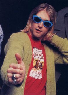 não me parece estranho que kurt tenha escolhido esse modelo de óculos como uma de suas assinaturas de estilo: oversized, de lentes escuríssimas, ideal para esconder bem o rosto de uma celebridade que nunca quis ser uma celebridade, ao mesmo tempo que seu glamour retrô destoa não apenas do contexto musical no qual o nirvana estava inserido, mas das escolhas estéticas dos artistas e do público da cena grunge num geral.