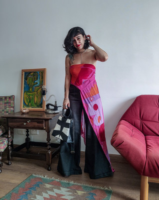 e pra melhorar tudo, tô enrolada num lenço dos anos 60 com uma estampa pucci-inspired que era da minha vó; olha que avant-garde 💫 que a estampa vintage tenha ornado perfeitamente com esse quadro de @santidio_pereira eu só posso atribuir aos deuses dos luquinhos.